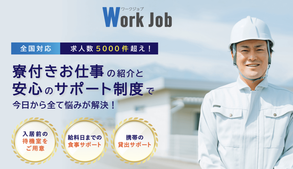 ワークジョブ(株式会社ワークジョブ)とは、寮・社宅完備の求人紹介に特化した就職支援サービスです。